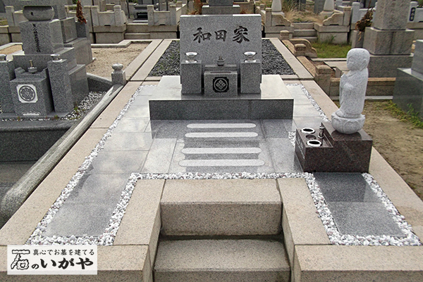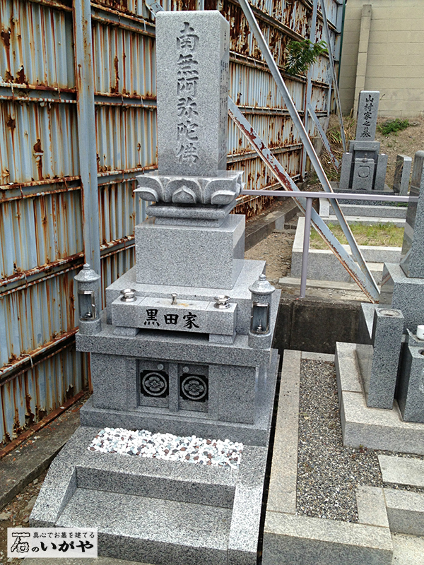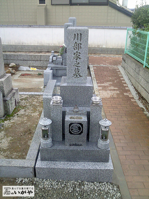 富山県から石碑のみを移転工事。富山県のお墓は大きく、大阪の墓地区画内に納まり切らない為、納骨堂部分のみ新規の石でご提案させていただきました。移転と同時にリフォーム工事のご提案をさせていただきました。【リフォーム内容】