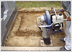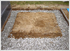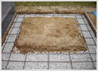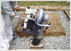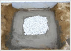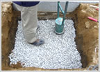 (5) 巻石基礎と同じく、カロートのサイズに合わせて基礎となる部分の土を掘り、よく土をしめます。
