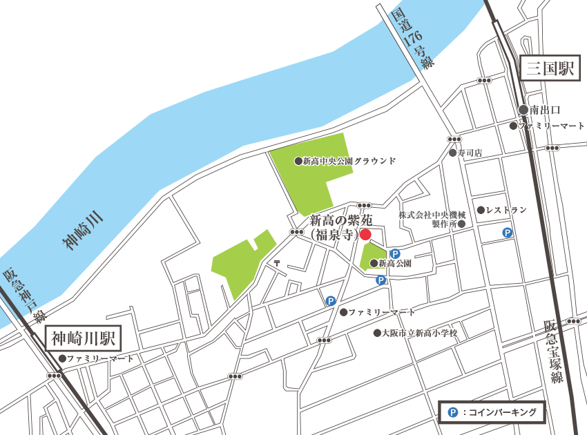 阪急宝塚線 三国駅 南出口より徒歩6分(約450m)、阪急神戸線 神崎川駅 南口より徒歩9分(約700m)2つの路線から徒歩圏内。